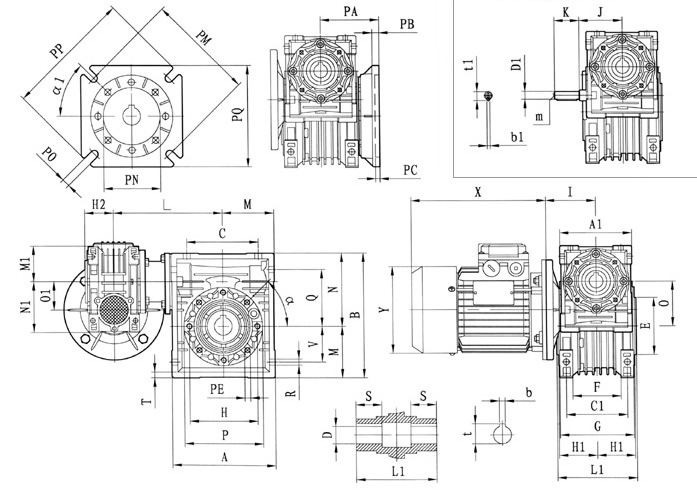 型號(hào) N1 O 01 P Q R S T V PE α b b1 t t1 m Kg