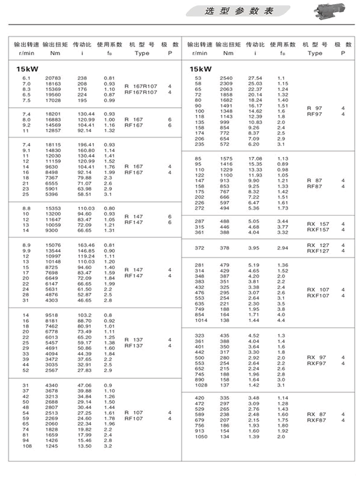 R斜齒輪減速機(jī)選型參數(shù)表15KW