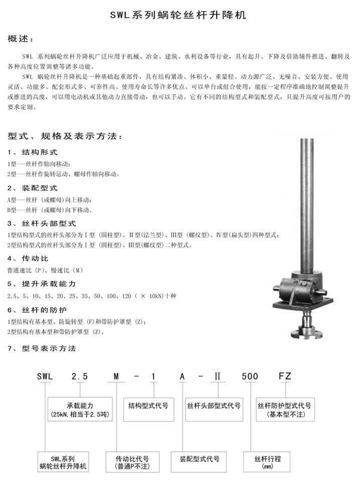 SWL絲桿升降機(jī)的概述\型號(hào)表示方法